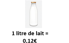 - Un litre de lait coûte seulement 0,12 €