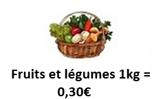 - Un kilo de fruits ou de légumes est vendu 0,30 €